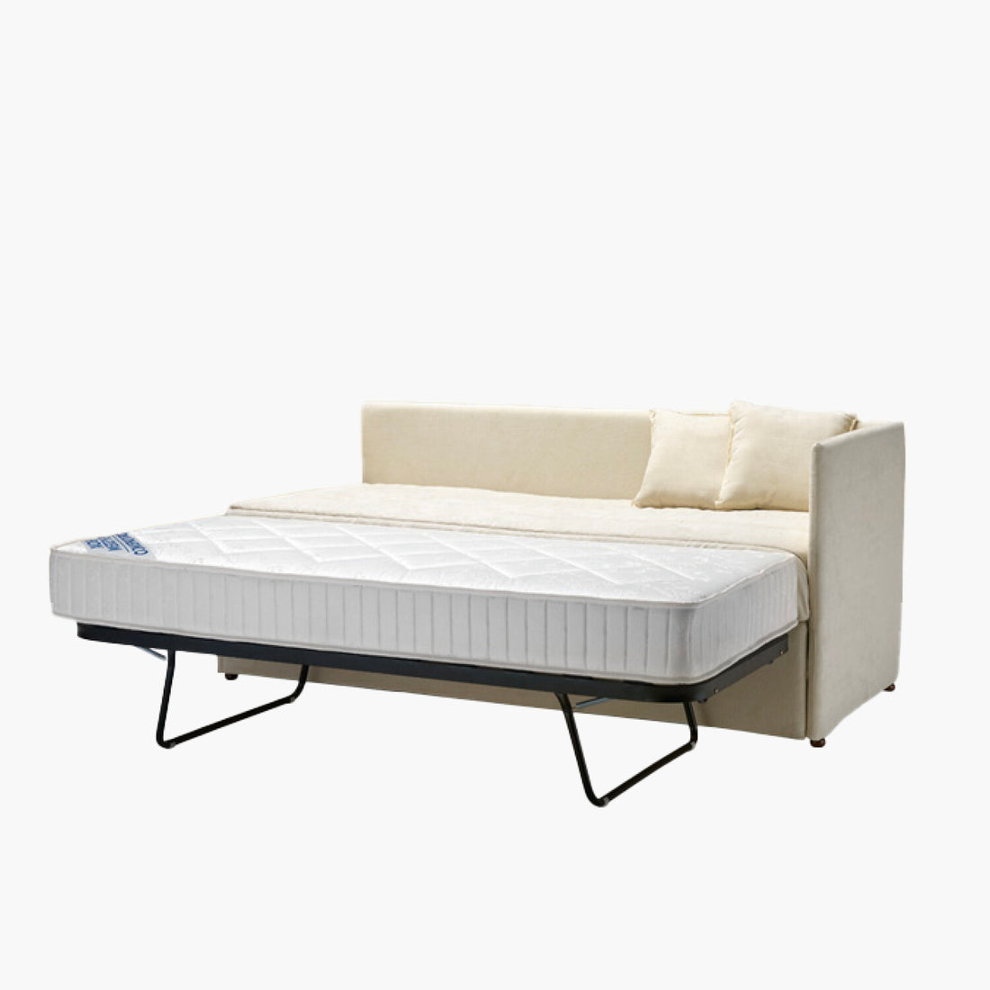 Divano con rete estraibile, completo di materasso, trasformabile in un ampio letto matrimoniale o in due letti singoli. La soluzione intelligente per ottimizzare i piccoli spazi.