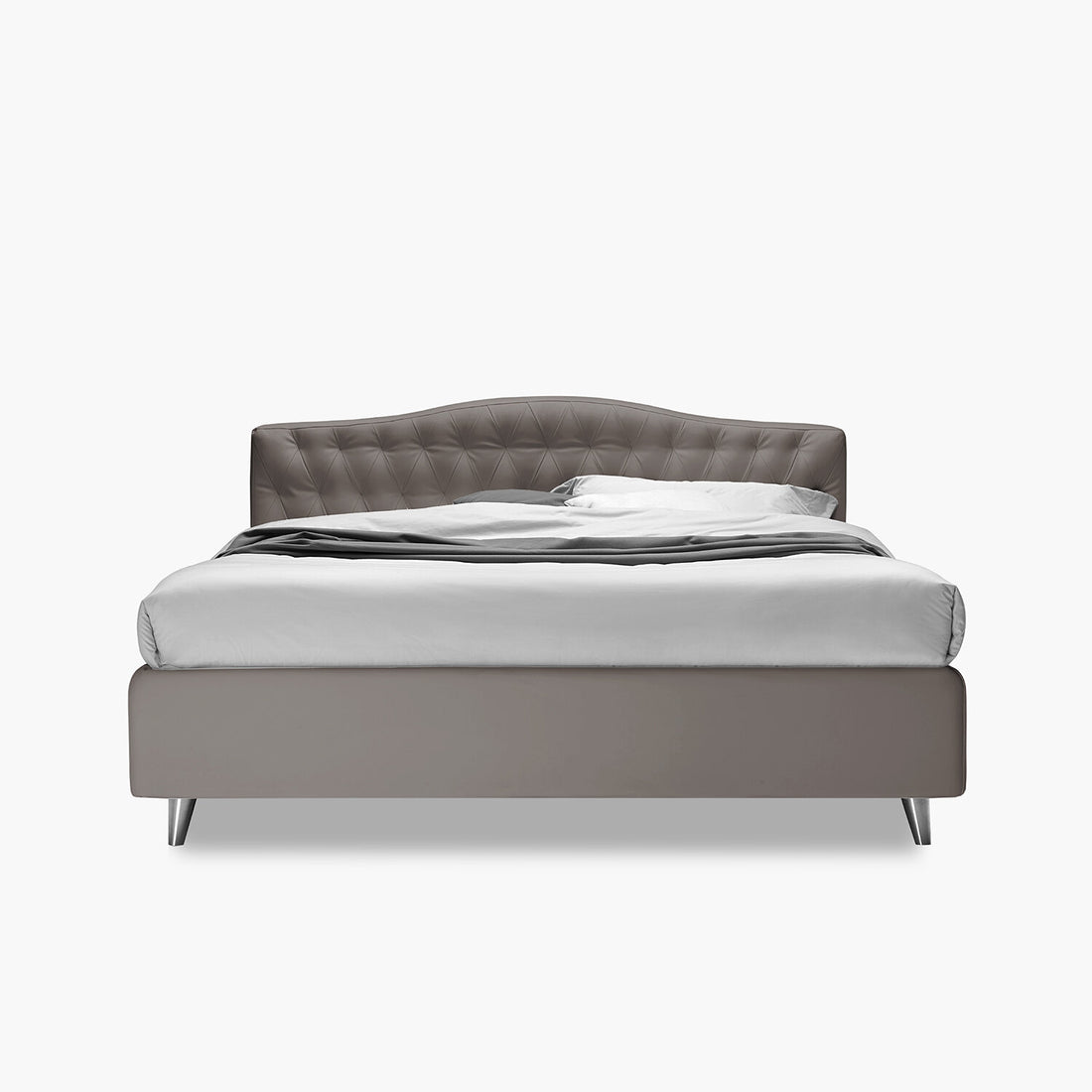 Il Letto Desiderio Capitonè è un letto realizzato in Italia costituito da un pratico contenitore alto 17 cm, rete ortopedica a doghe in legno e piedini conici in alluminio da 11 cm. La testata è in capitonné, lavorata a mano. Il rivestimento è completamente sfoderabile, realizzato in ecopelle e disponibile in diverse colorazioni.