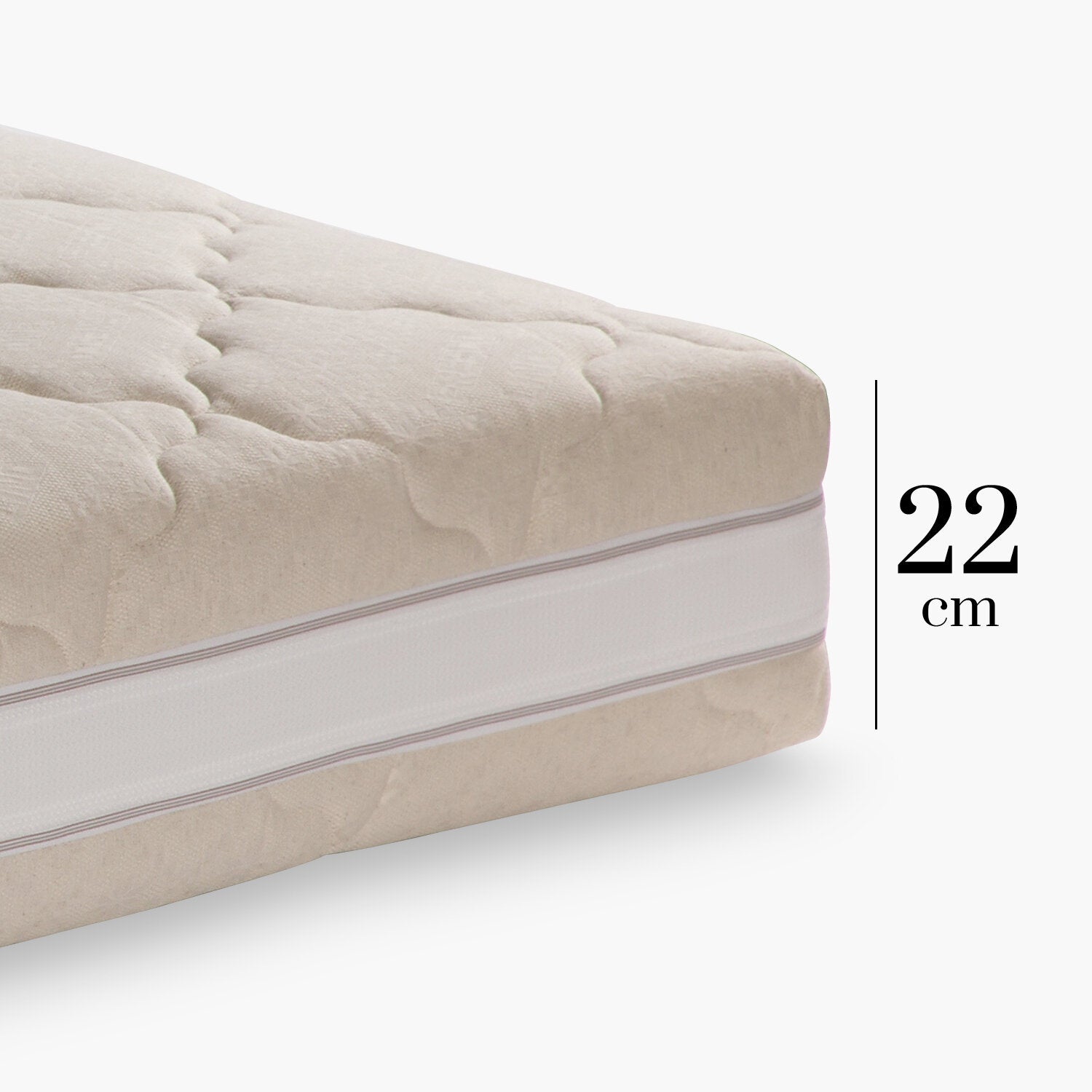 Materasso con 1000 molle insacchettate e 7 zone differenziate che donano un comfort equilibrato. Rivestimento sfoderabile in lino, fresco e traspirante.