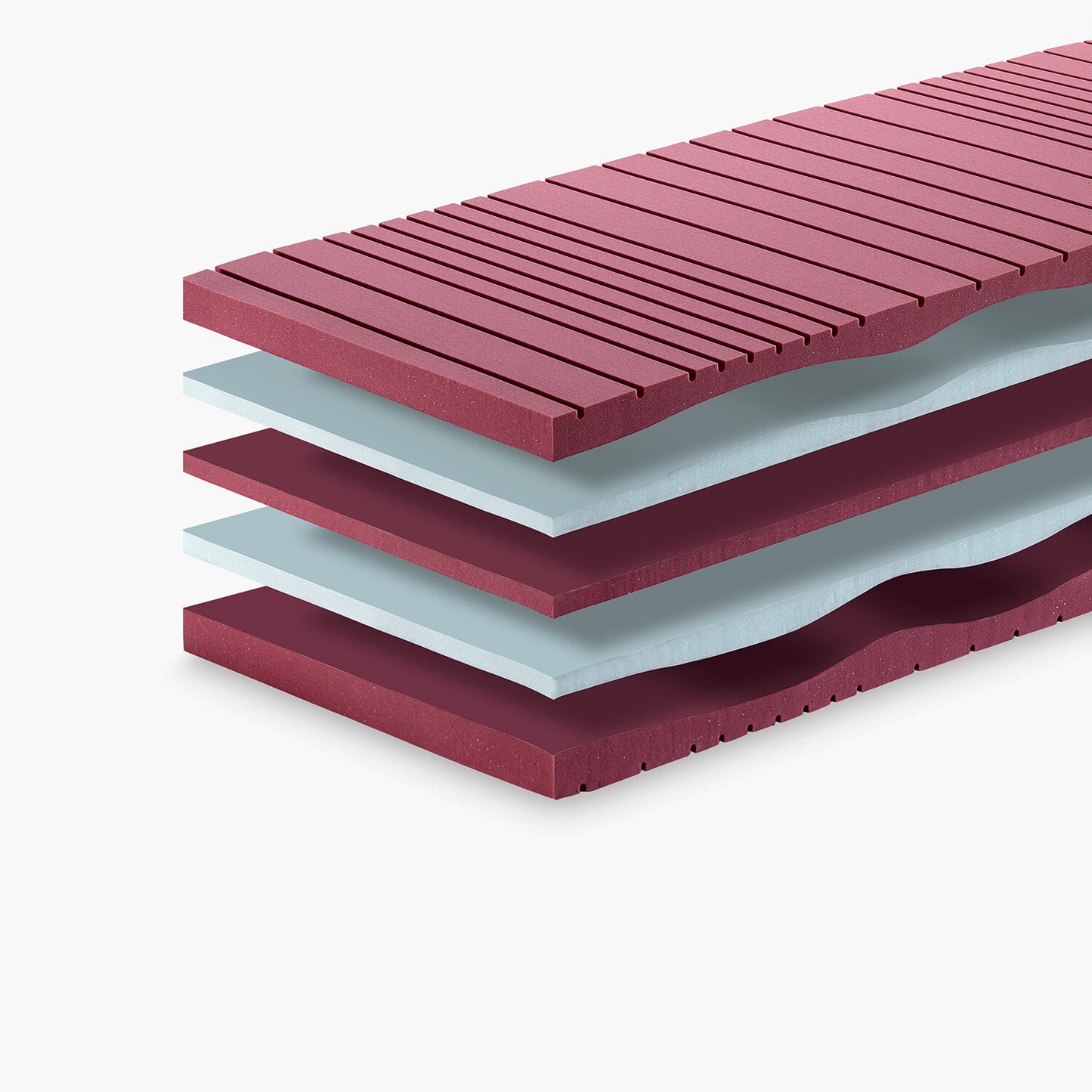 La sua particolare struttura interna è composta da tre strati di Aquagel ad alta elasticità a spessore differenziato, alternato a due strati di Aquagel classico, che esalta al massimo le caratteristiche di questi materiali.