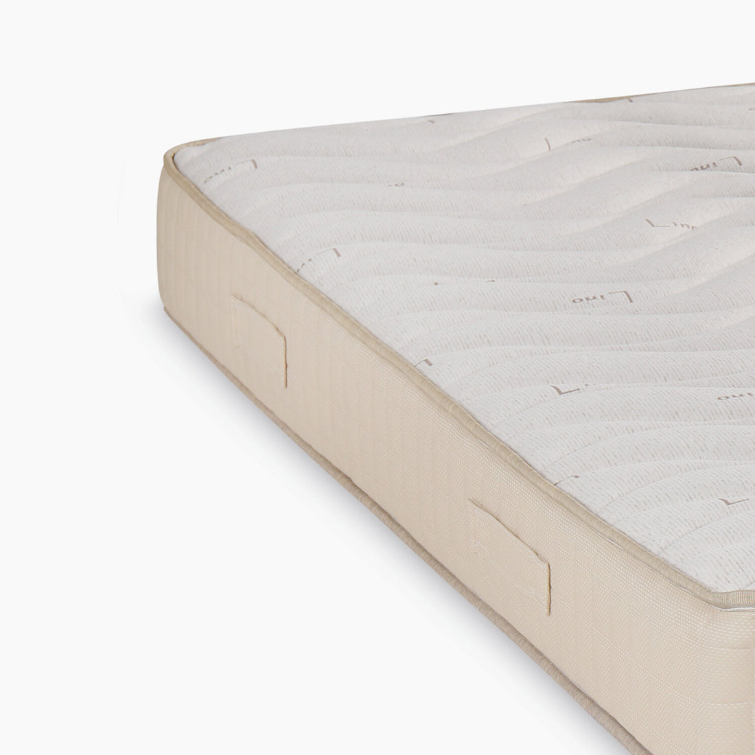 Materasso ortopedico a molle dotato di 600 minimolle bonnel (versione matrimoniale), box perimetrale di sostegno. Sereno è dotato di un rivestimento fisso, fresco e traspirante, realizzato con tessuto a base di lino e cotone.