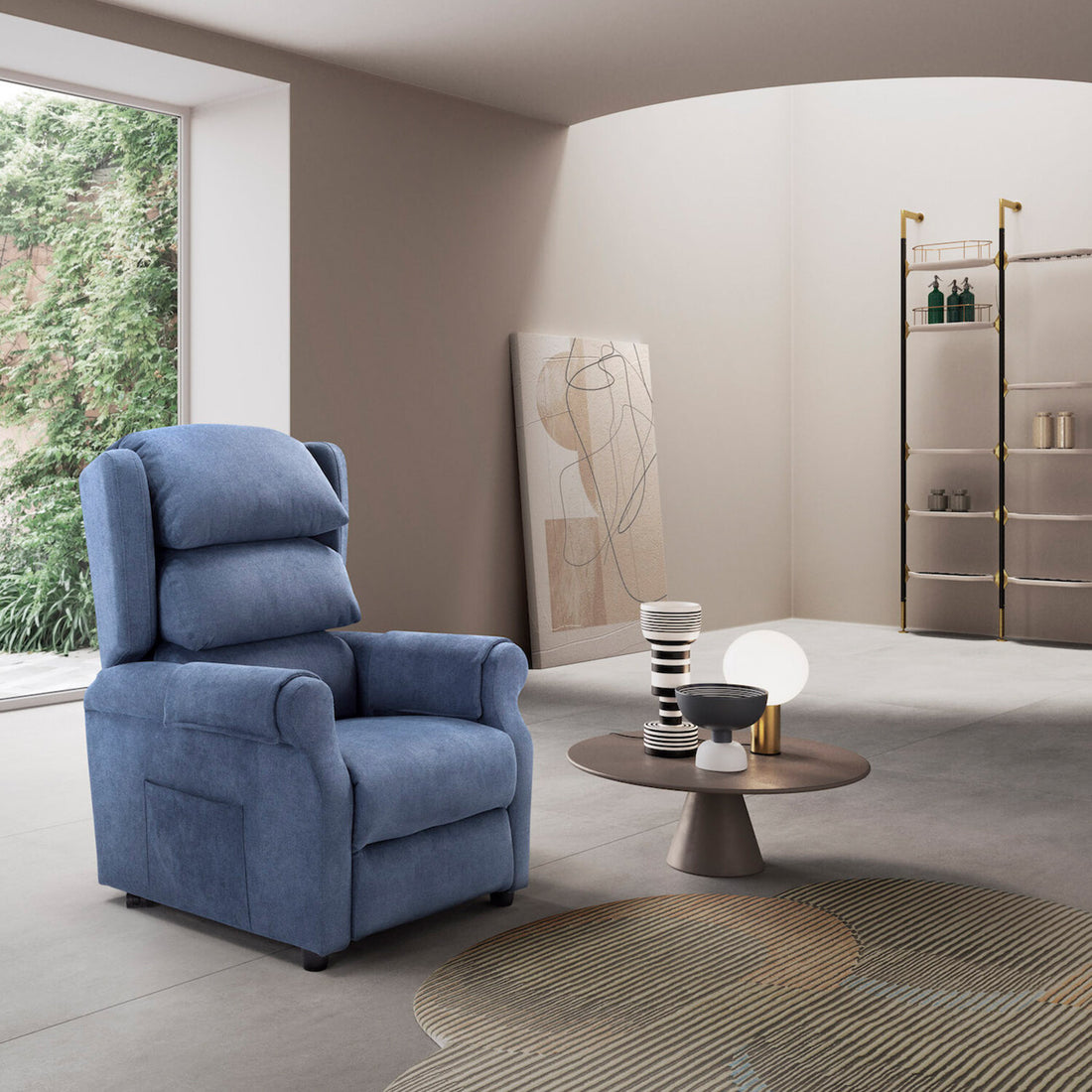 Poltrona relax caratterizzata da doppia pediera, favorisce la circolazione ed è ideale per persone con difficoltà di deambulazione