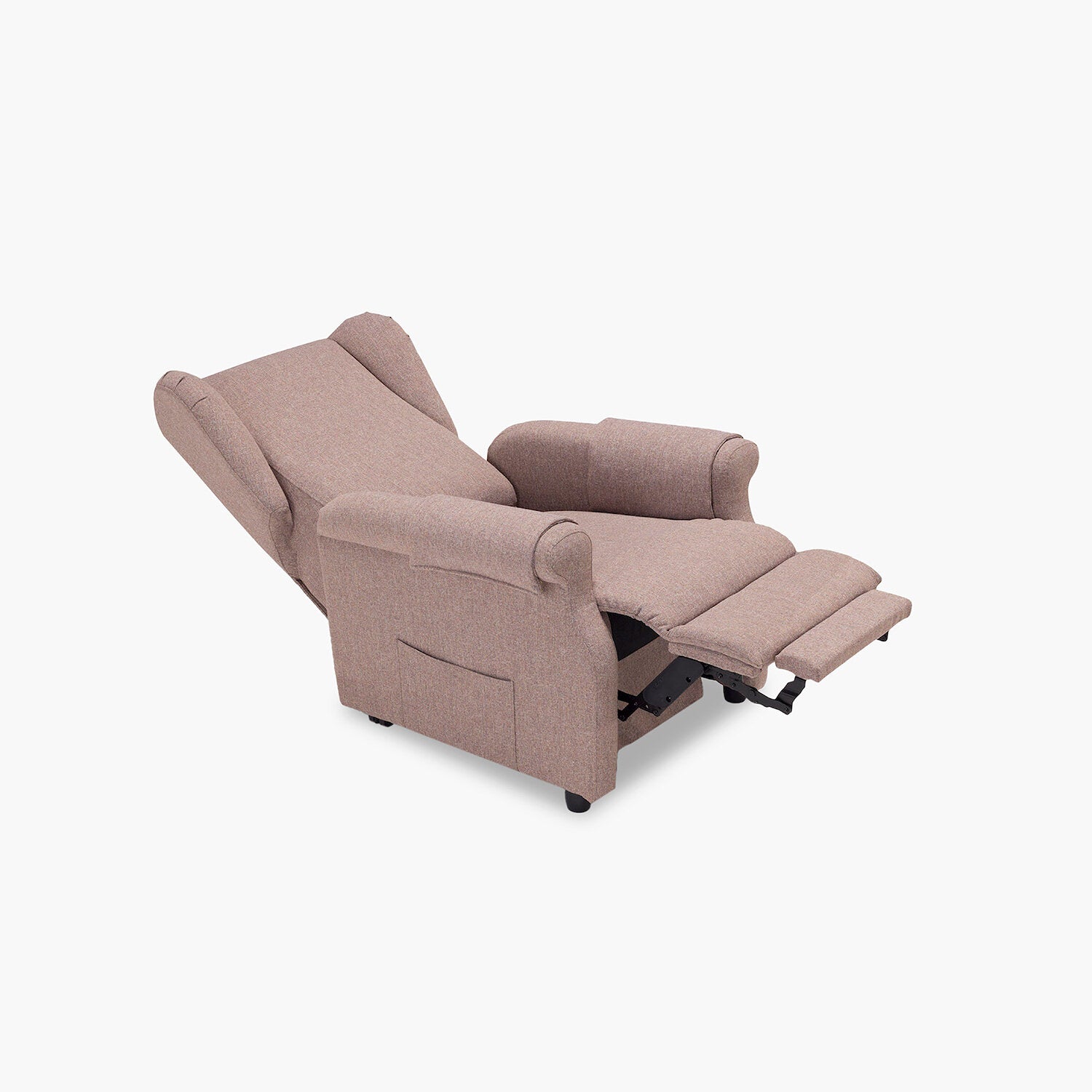 Poltrona relax elettrica con confortevoli braccioli imbottiti dal design classico. Dotata di sistema alzapersona e di roller system.