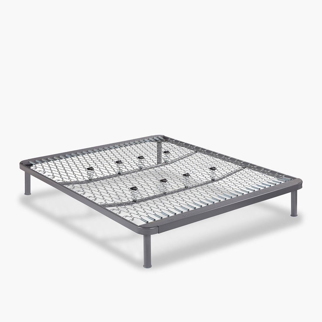 Rete ortopedica a maglia metallica, con due traverse di rinforzo e una speciale barra brevettata di supporto alla testa e ai piedi.